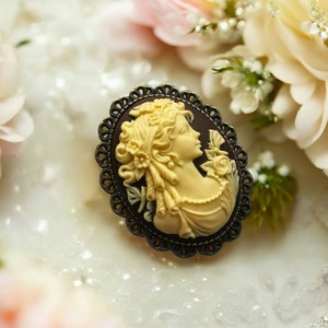 Cameo Brooch #44 カメオ ブローチ 貴婦人 ブラウン