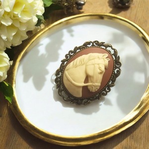 Cameo Brooch #62 カメオ ブローチ 馬 テラコッタ