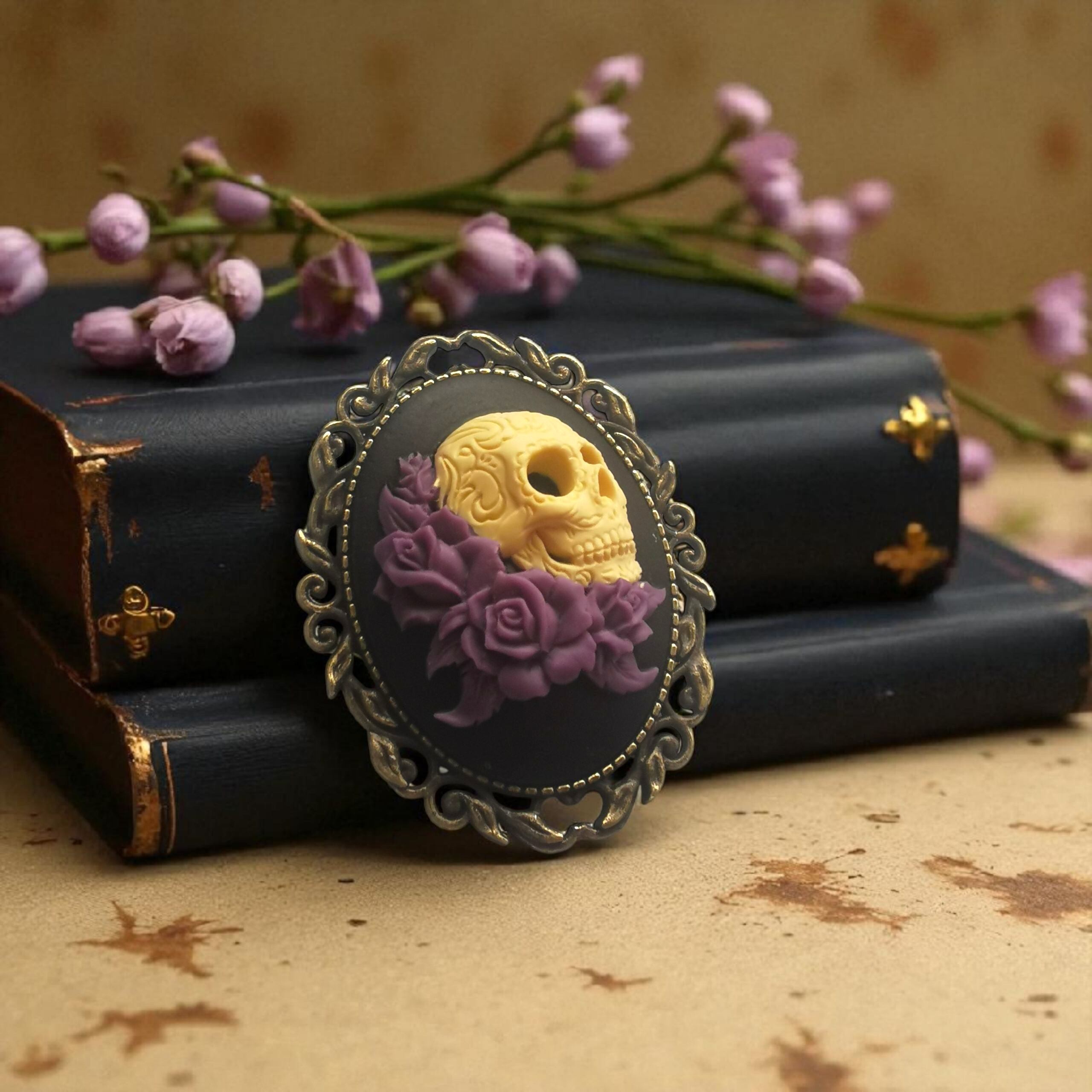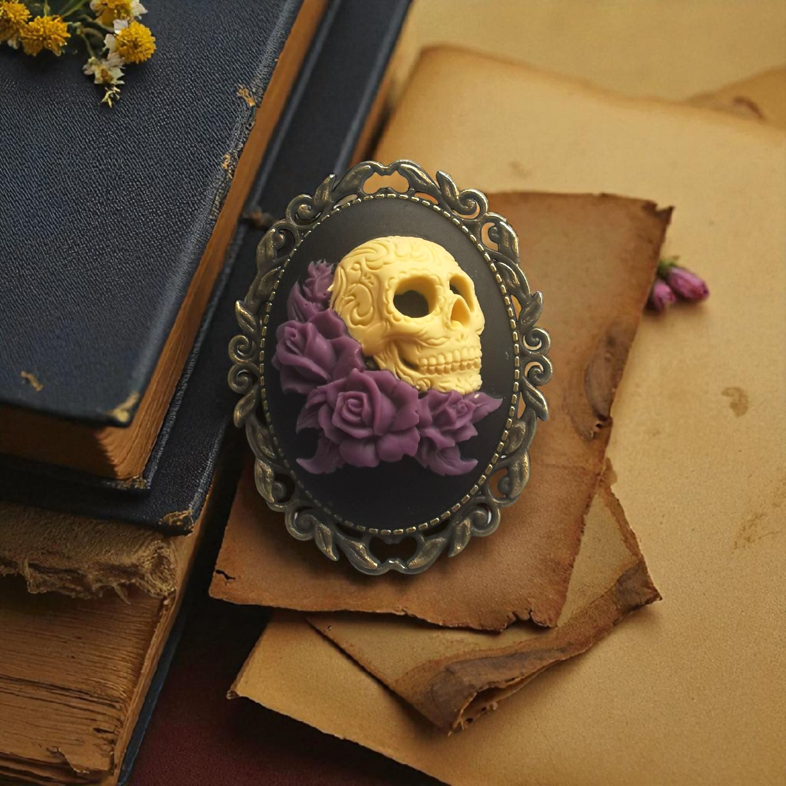 Classics Cameo Brooch #2 カメオ ブローチ 薔薇と骸骨 パープル