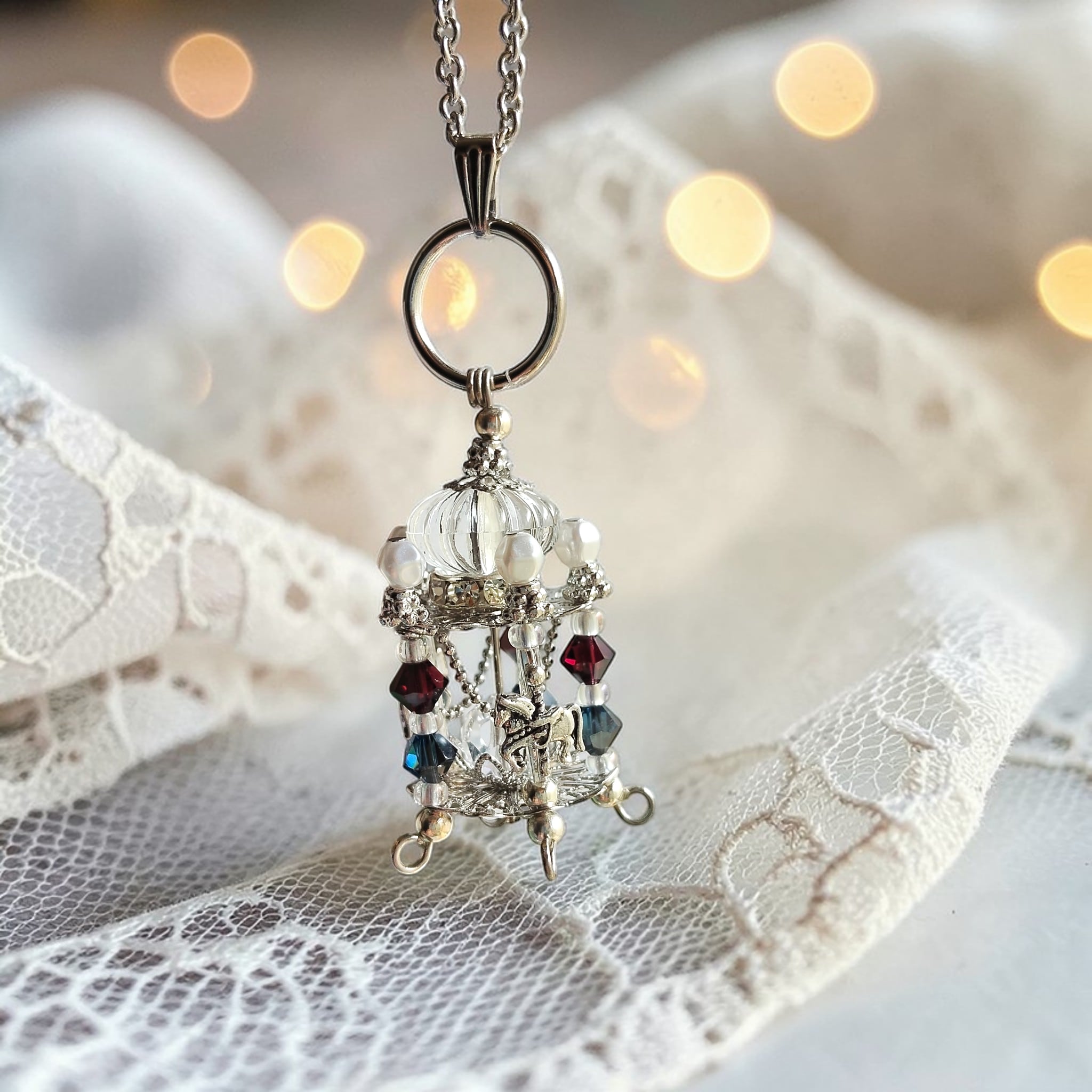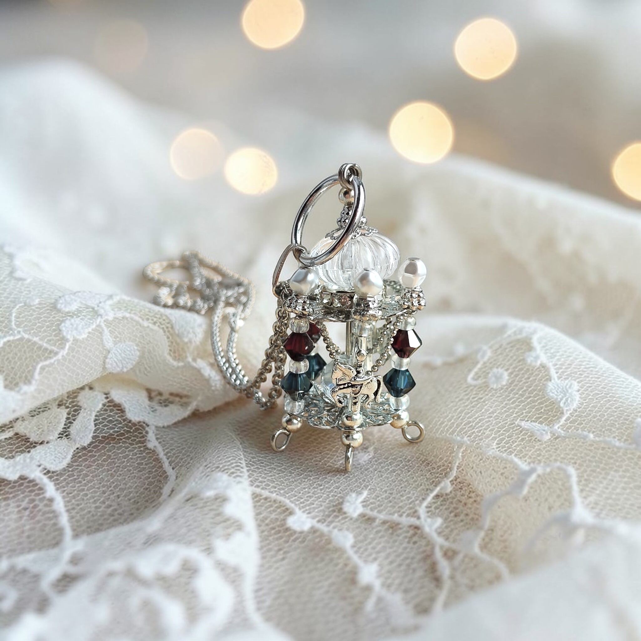 メリーゴーランド ネックレス 木馬 回転木馬 遊園地 ファンタジー ゴスロリ ゴシック ロリータ クラロリ ノスタルジー 郷愁 レトロ ゆめかわ パステル 馬モチーフ 馬 暖かい 光 夜 街 ロマンティック プレゼント 贈り物 ギフト ラッピング 大人可愛い キラキラ お出かけ パーティー デート 華やか ビーズアクセサリー 女子会 秋 秋アクセサリー 冬 冬アクセサリー おしゃれ 誕生日 クリスマス 母の日 お母さん クリスマスギフト クリスマスプレゼント 大人可愛い