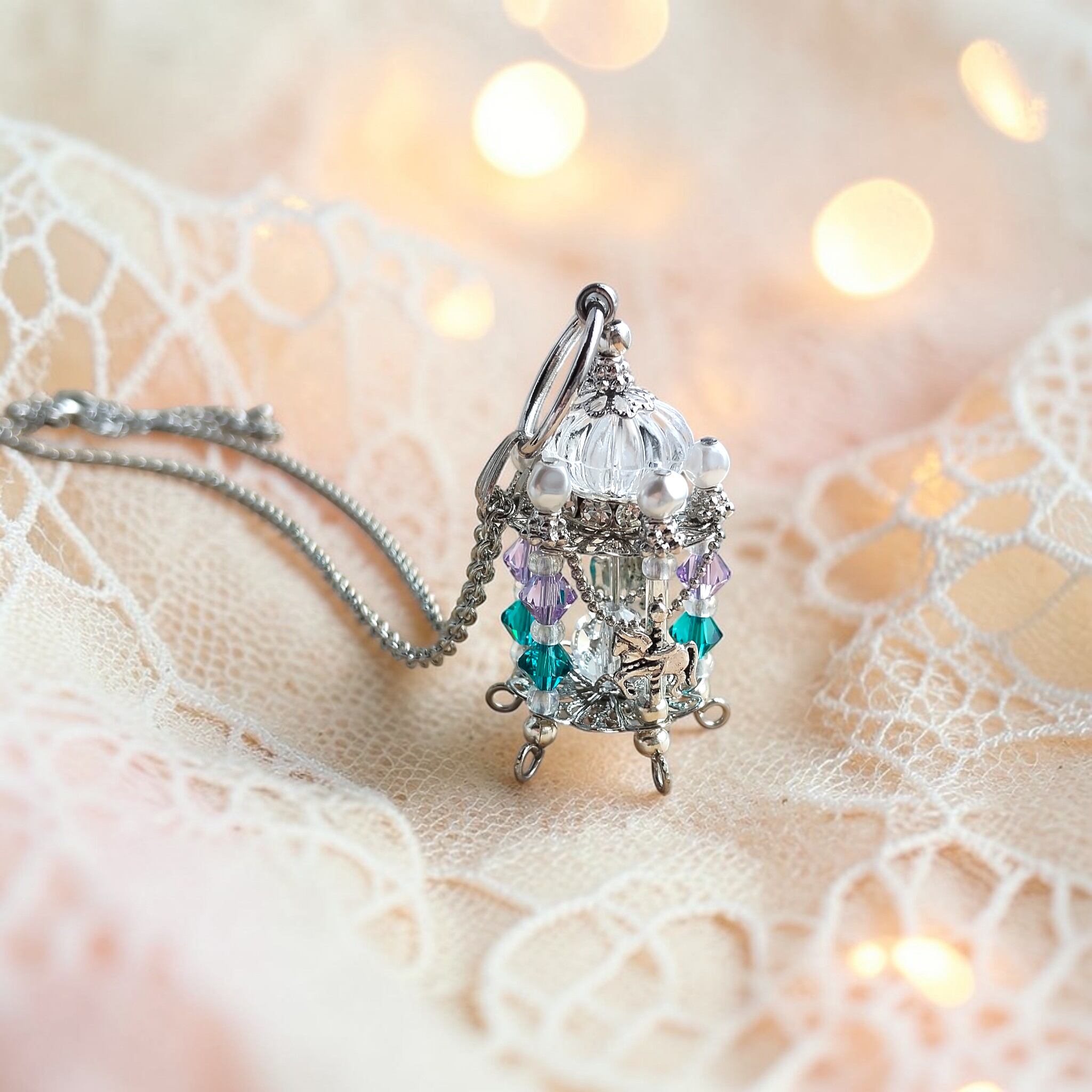 「回想のメリーゴーランド」は、その記憶をかたちに閉じ込めたような、繊細で華やかなネックレスです。