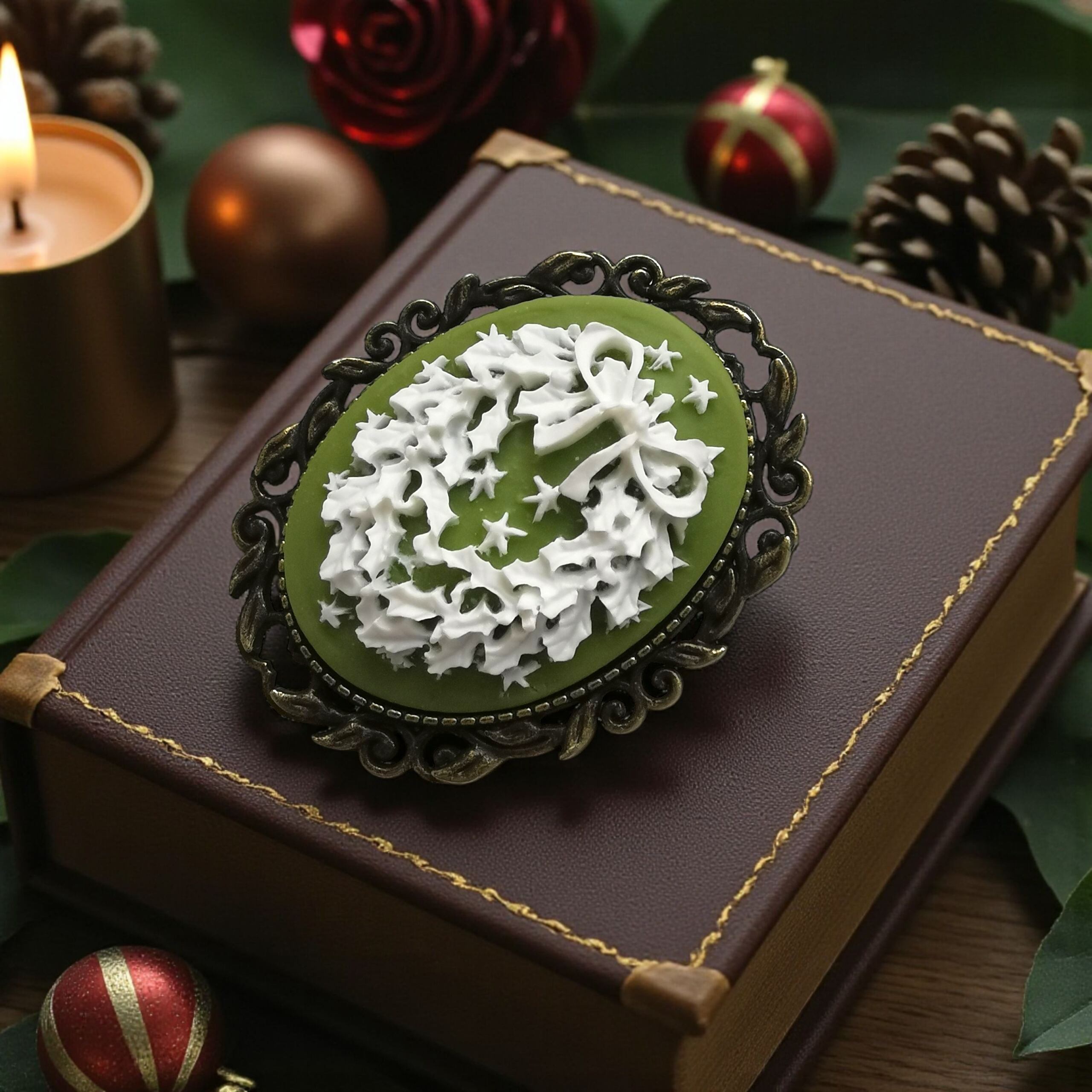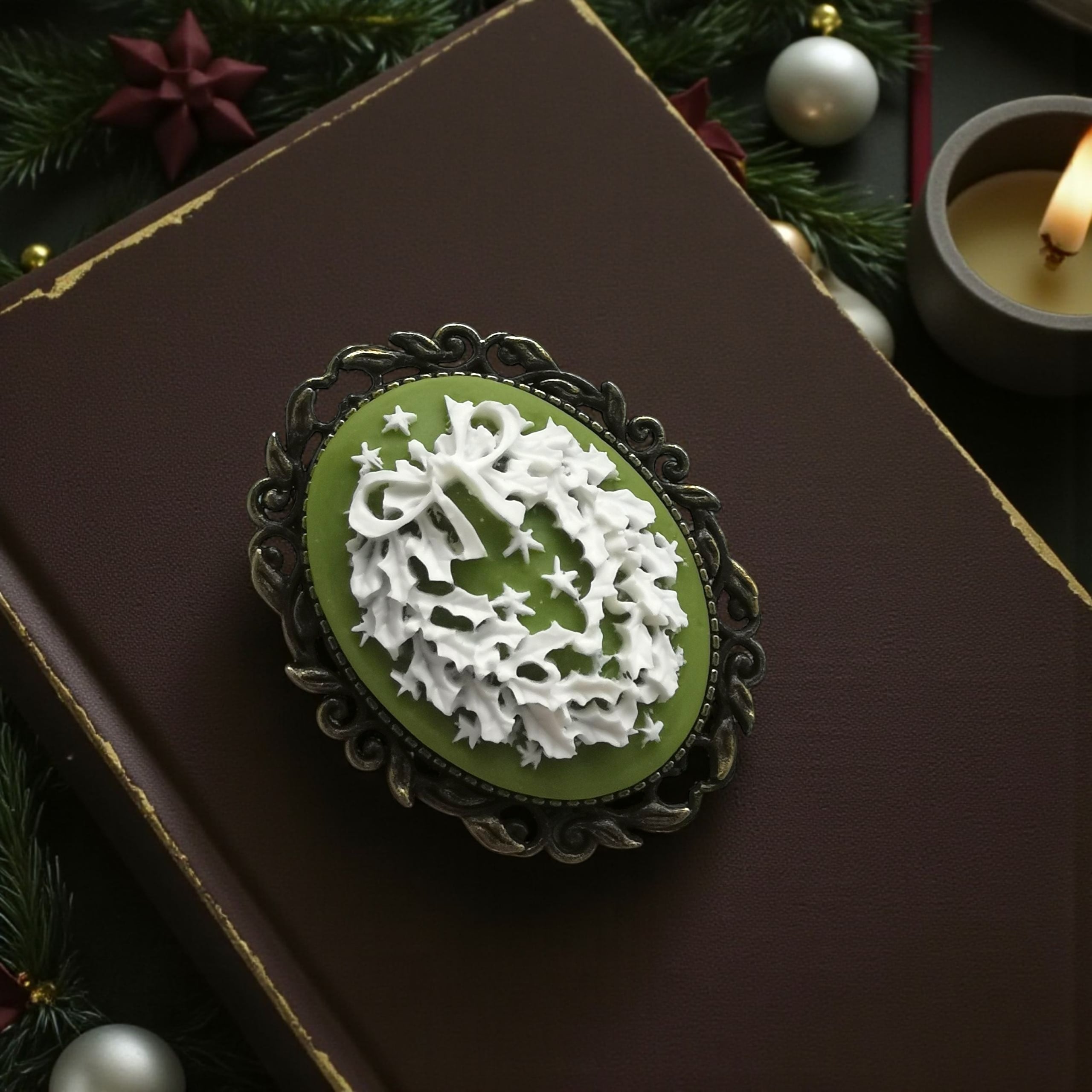 Cameo Brooch #103 カメオ ブローチ クリスマスリース 緑