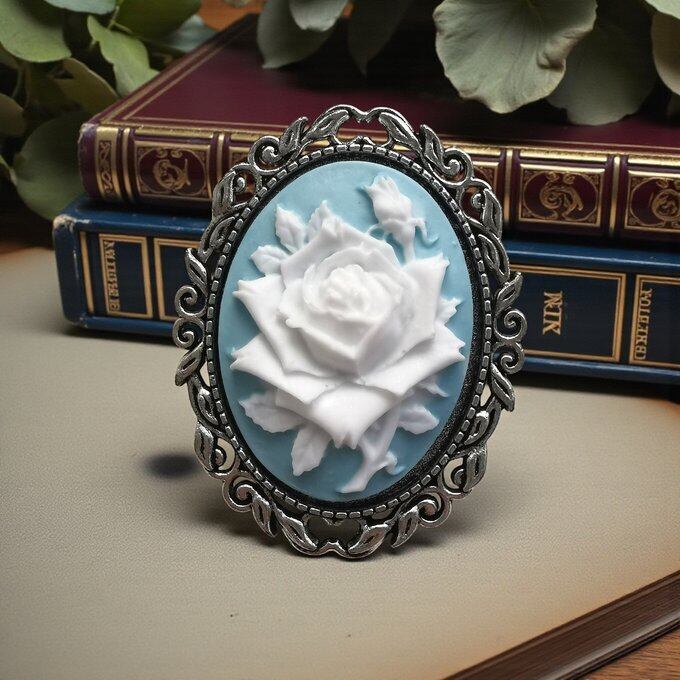 Cameo Brooch SF2 カメオ ブローチ 薔薇 パウダーブルー Side*Forestオリジナルカラー