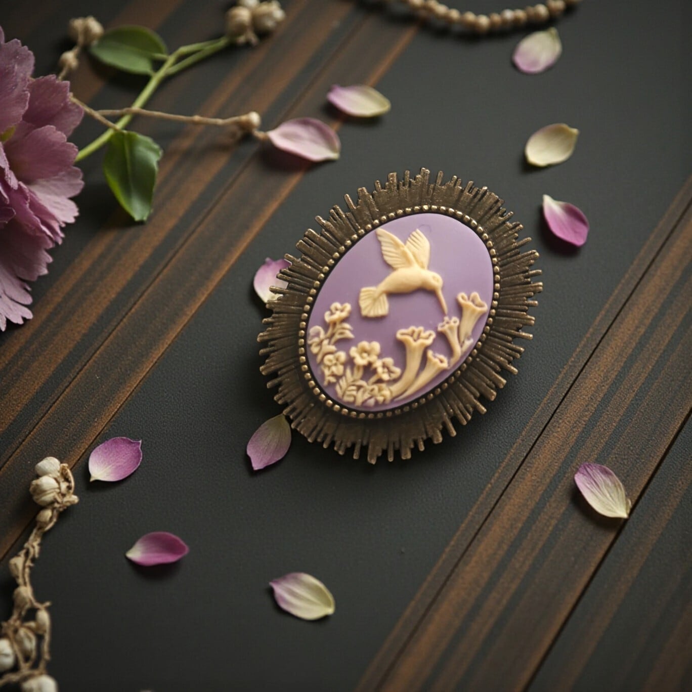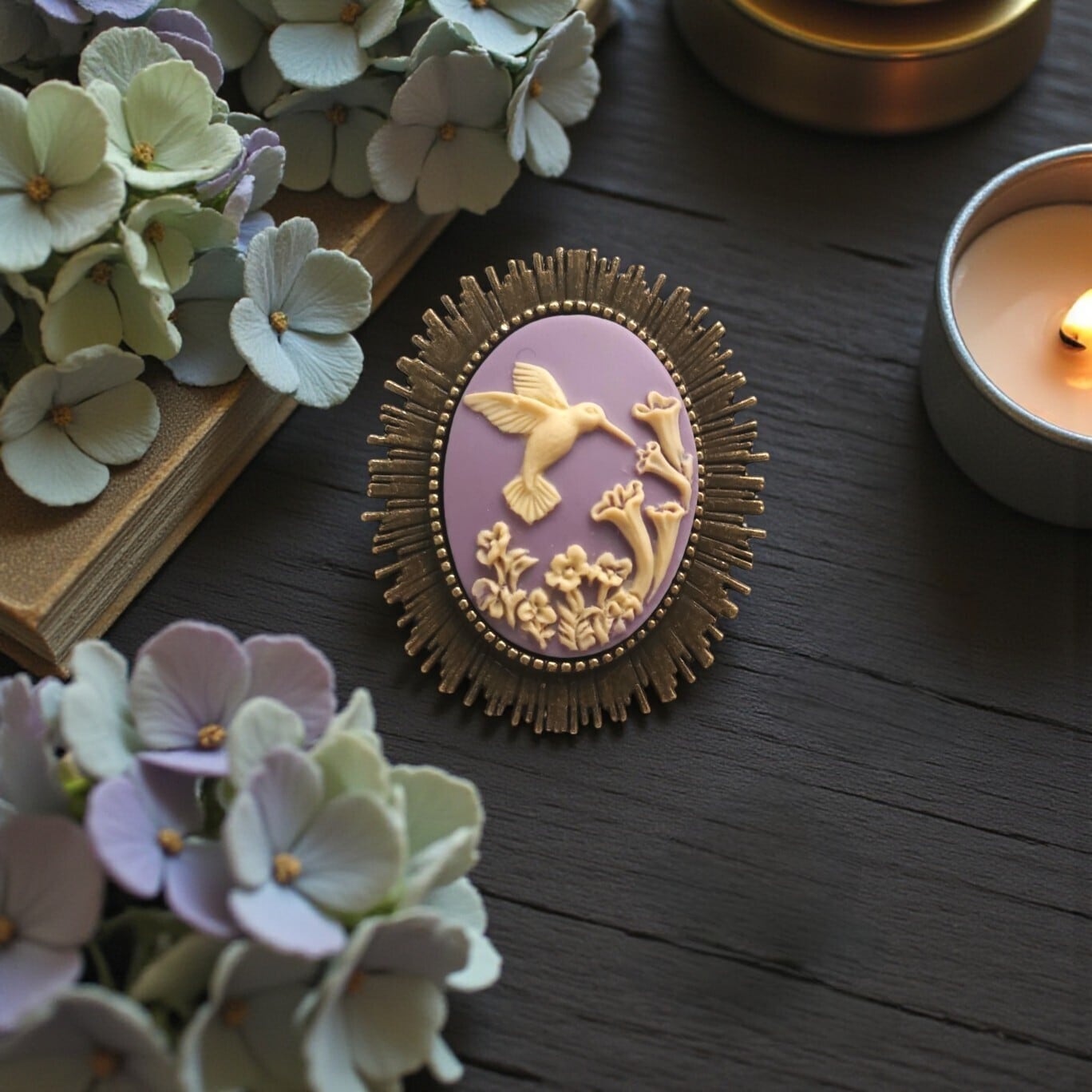 カメオ ファンタジー 魔法 幻想 ゴスロリ ゴシック ロリータ クラロリ 甘ロリ 黒ロリ 白ロリ 皇子 優雅 繊細 ロマンス クラシック 美しさ 高貴 調和 儚さ 贈り物 ギフト ラッピング プチギフト 大人可愛い お出かけ パーティー デート 華やか 女子会 お花アクセサリー おしゃれ 誕生日 クリスマス 母の日 敬老の日 旅行 お母さん クリスマスギフト クリスマスプレゼント 大人可愛い ファンタジー アンティーク ハチドリ 鳥 とり はちどり ラベンダー 紫
