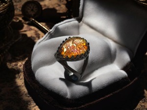 ヴィンテージ ビンテージ 年代もの レア 希少 ガラス ヴィンテージガラス 幻想 幻想的 リング ゆびわ 指輪 りんぐ 手 指 アンティーク 懐古 プレゼント 贈り物 ギフト ラッピング プチギフト 透ける 大人可愛い キラキラ お出かけ パーティー デート 秋アクセサリー 冬アクセサリー 秋冬 黄色 マスタード オレンジ