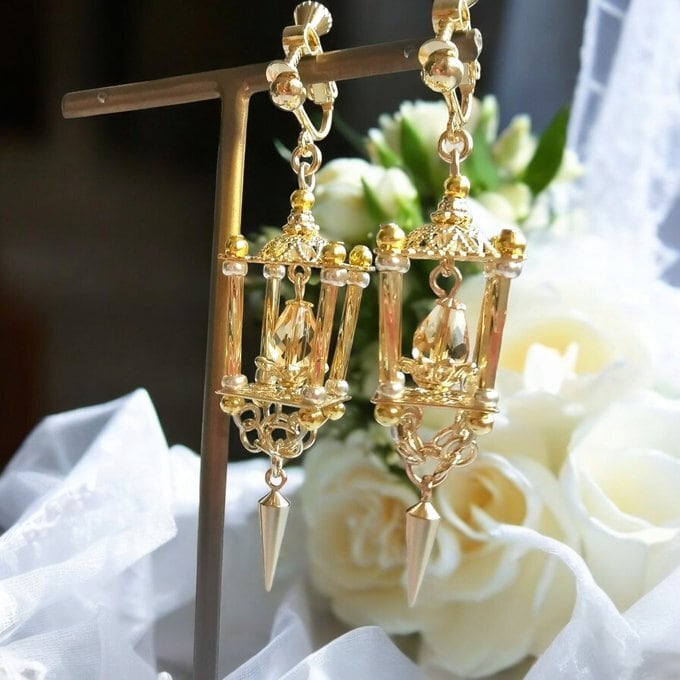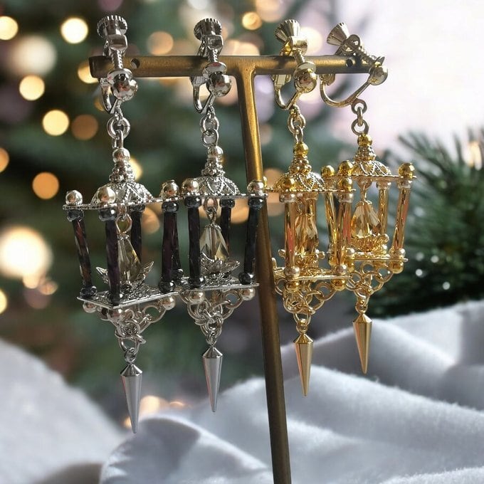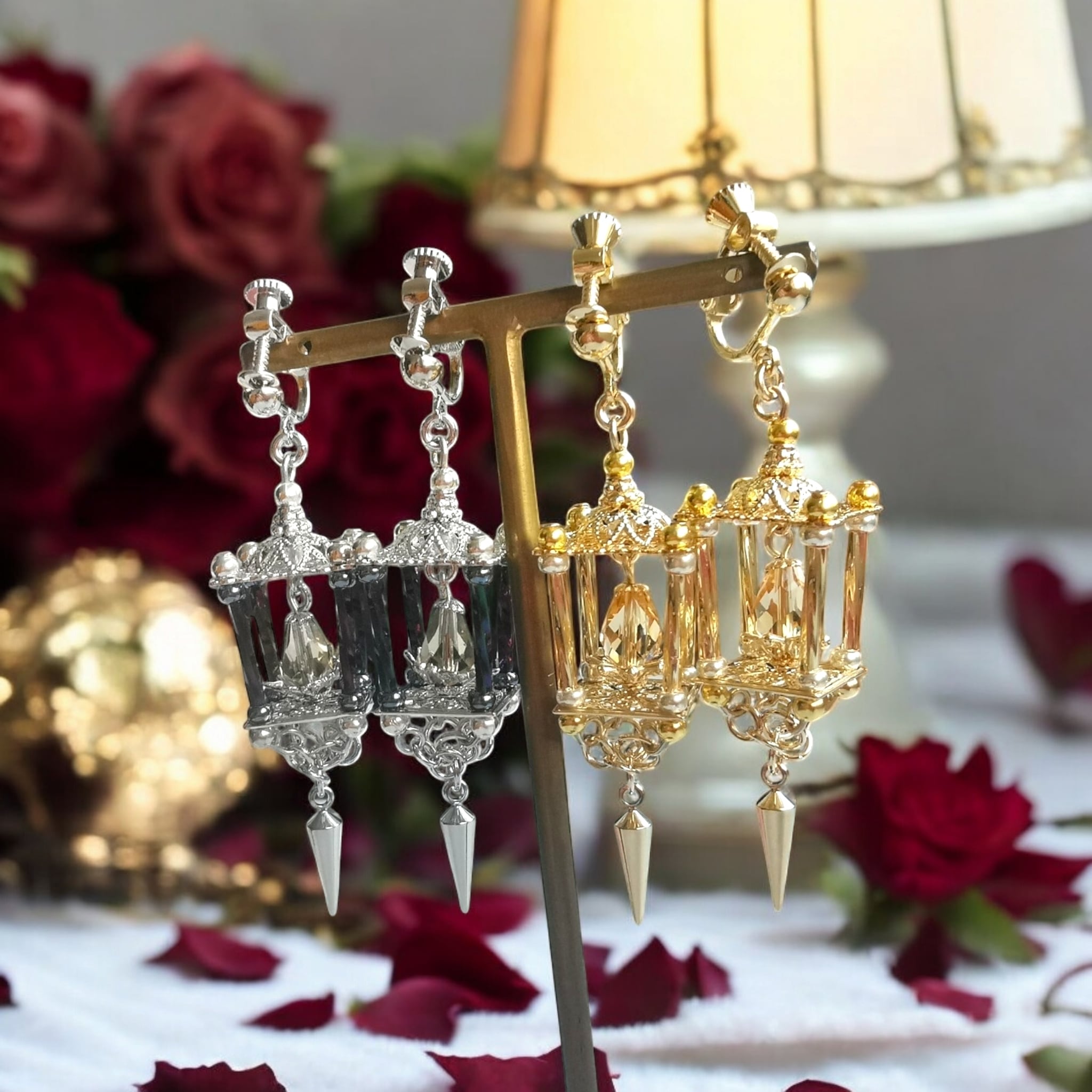 アンティークなガス灯を思わせる優雅でノスタルジックなデザインの耳飾りです。