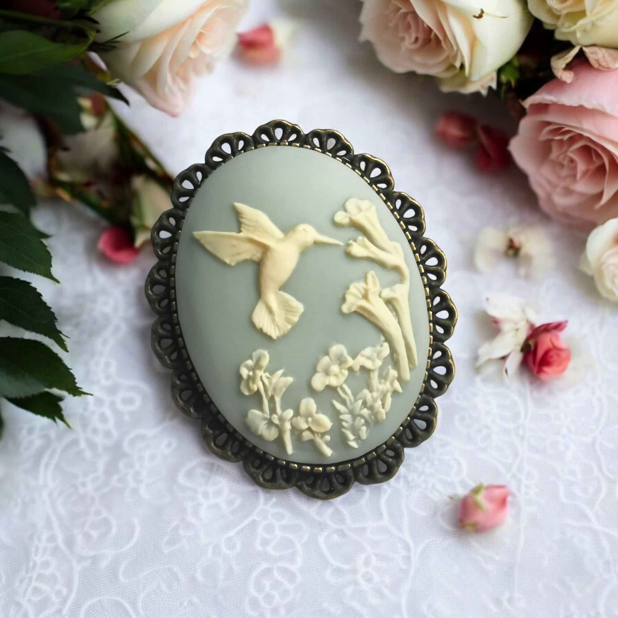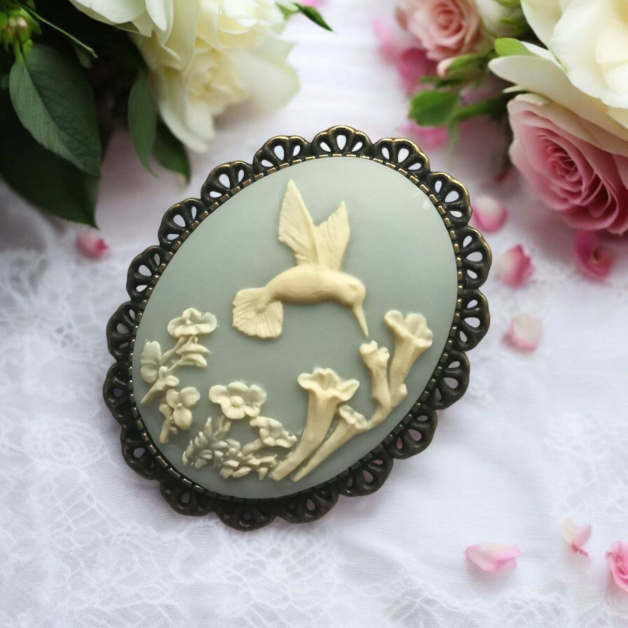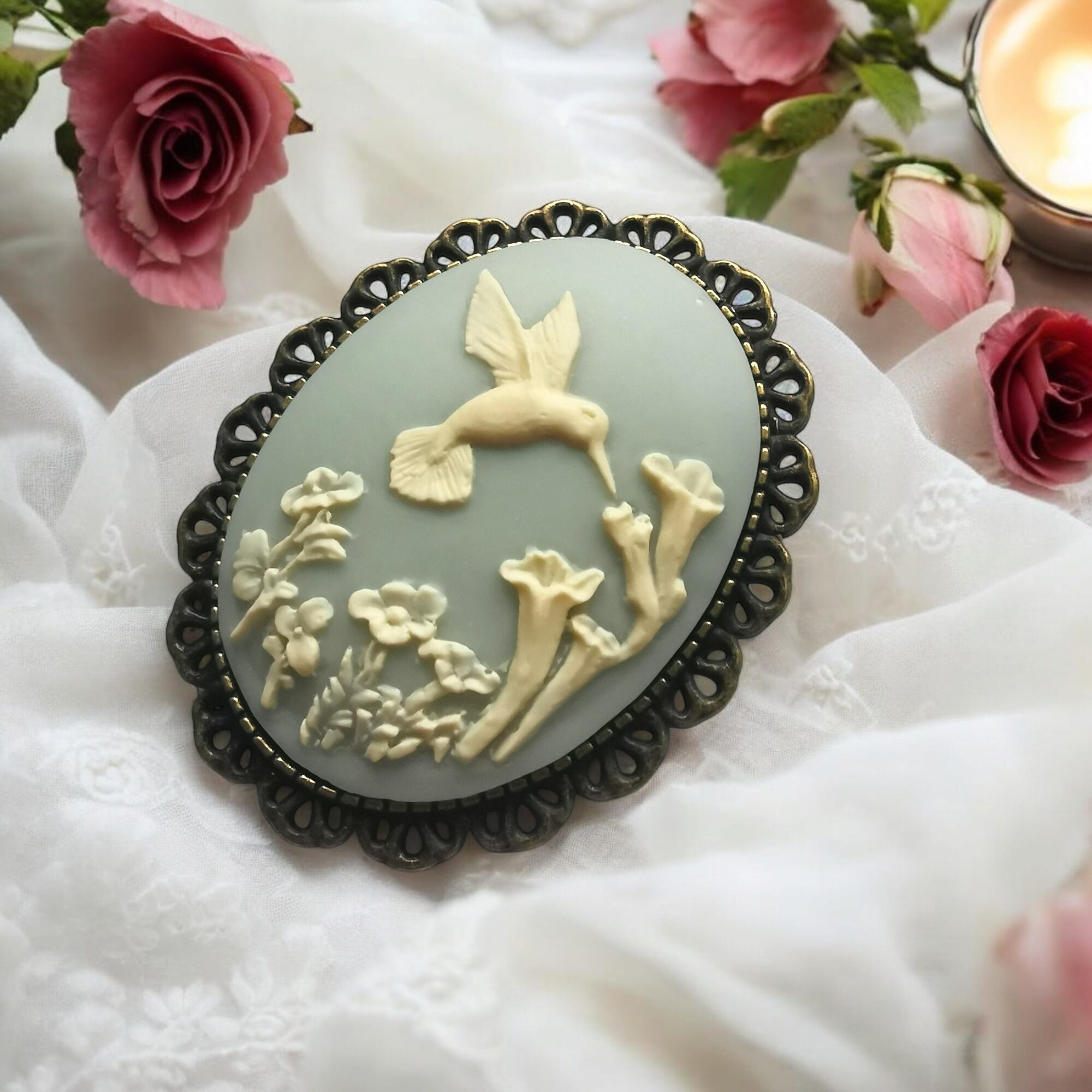 Cameo Brooch #12 カメオ ブローチ ハチドリ 蜂鳥